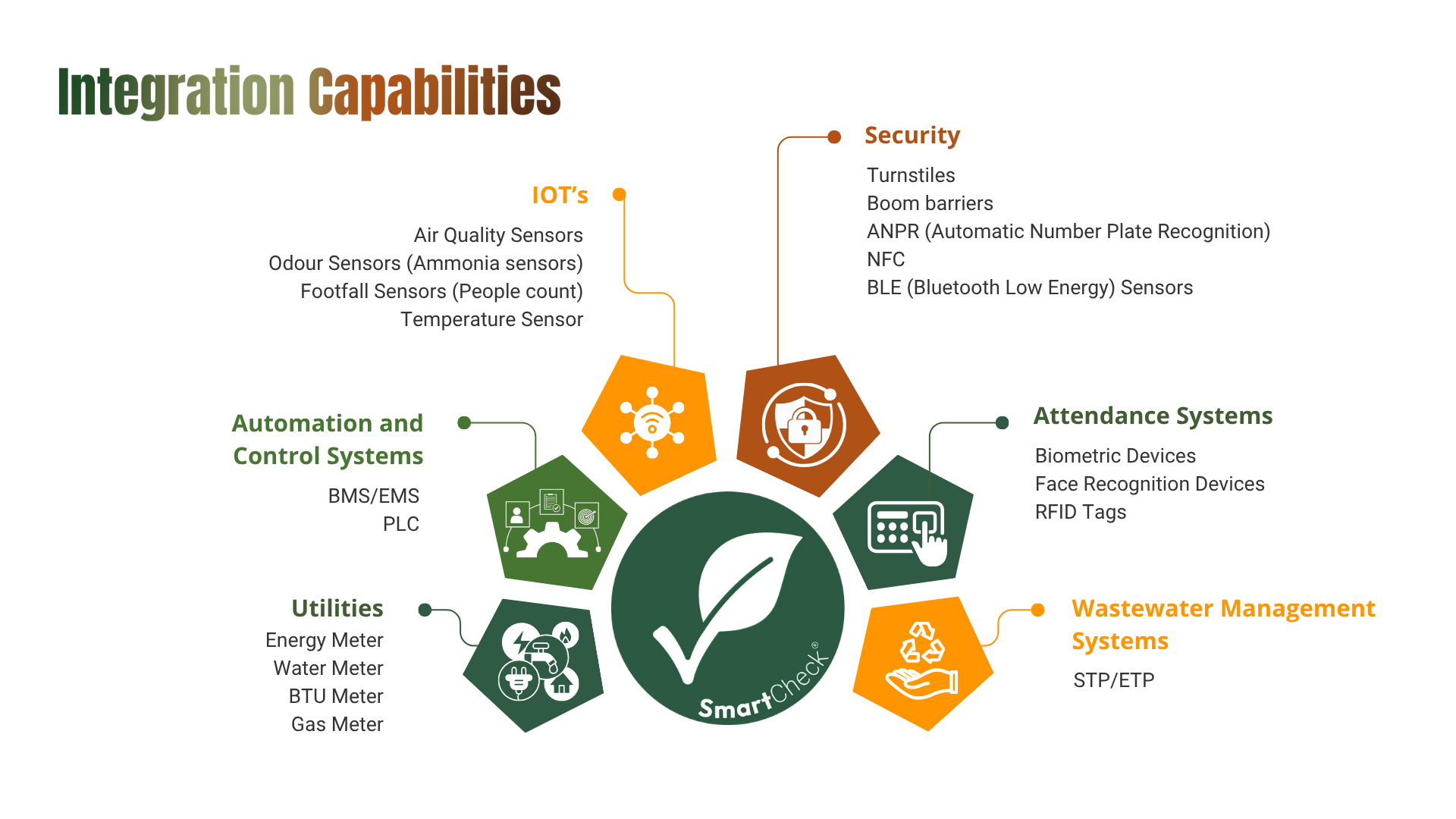 SmartCheck eliminates data silos by integrating Building Management Systems (BMS), Energy Management Systems (EMS), and IoT sensors into a unified, intelligent platform. Real-time telemetry is converted into actionable intelligence, automatically triggering work orders when anomalies are detected. Facility Leaders and Operations Teams can finally operationalize IoT data to drive measurable business outcomes.