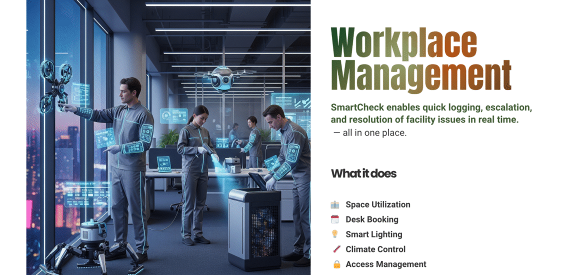SmartCheck unifies room booking, visitor management, and workplace analytics into a single, intuitive platform. Employees benefit from seamless reservations and navigation, while leaders gain actionable insights into space usage and experience trends. SmartCheck empowers organizations to align their workplaces with the evolving expectations of flexibility, collaboration, and employee well-being.